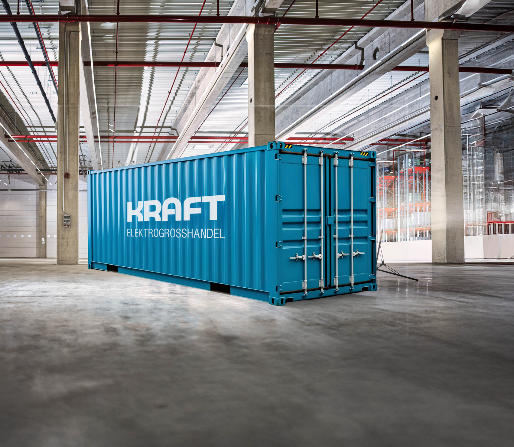 • Design: Standardcontainer mit hochwertiger KRAFT-Beschriftung